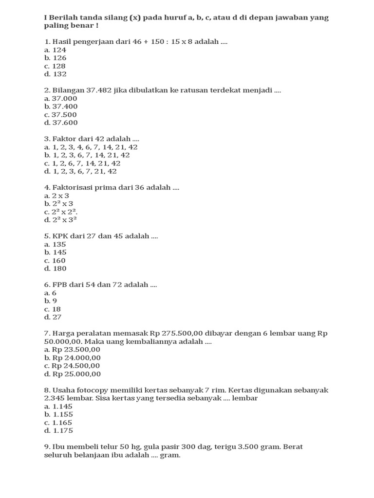 Soal Semester 2 Kelas Iv Ima Docx