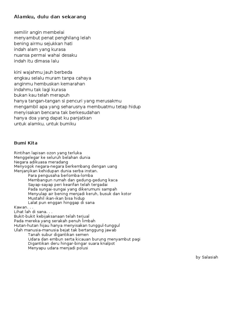 Demikianlah kumpulan puisi bumi. Ragam budaya yang menjadi satu itulah indonesia ku. Lekas pulih bumiku dan puisi lainnya reviewed by takanta on april 25 2020 rating.