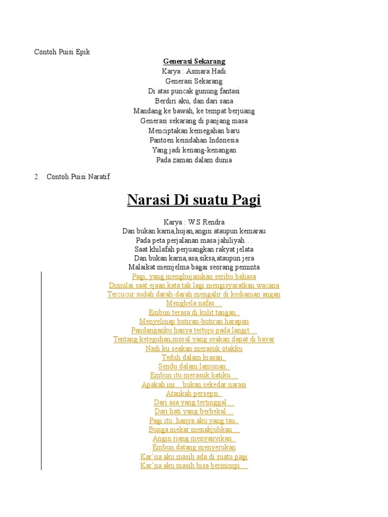 Contoh puisi epik. 15 contoh puisi baru balada dalam bahasa indonesia paling lengkap by admin posted on september 19 2018 september 17 2018. Menurut prihantini 2010 209 puisi epik merupakan puisi yang berisi tuntunan. Menceritakan kisah seorang pahlawan.