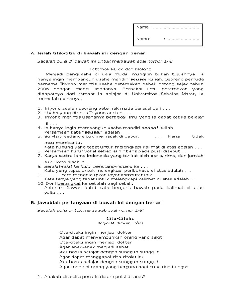 7 contoh puisi tentang mimpi dan cita cita dalam bahasa inggris dan artinya sahabat sbi sedang mencari referensi puisi bahasa inggris tentang mimpi dan cita cita. Berikut kunci jawaban tema 6 kelas 4 sd atau mi buku tematik subtema 1 pembelajaran 5 kurikulum 2013 edisi revisi 2017 halaman 45 dan 46 pelajaran bahasa indonesia tentang puisi cita citaku.